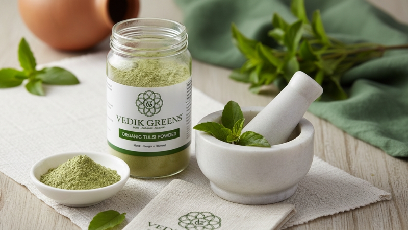 Vedic Greens Organic Tulsi Powder – Sacred Herb for Everyday Wellness